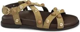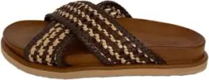 113129 Kokosnussleder Damen Sandalen Plateau Kreuzriemen Schnalle Strass 38