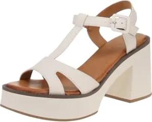 Damen-Sandalen mit Platform, Absatz 8 cm, weißes Leder, T-Armband, cremefarben, 40 EU
