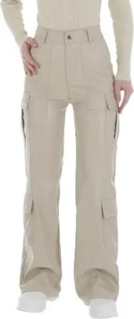Ital Design Damen GLÄNZEND Stretch KNÖPFE Reissverschluss Hose Emma&Ashley Gr. S Beige