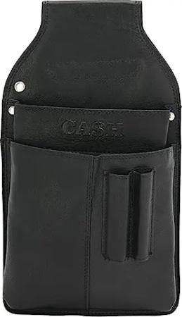 Große Leder Gürteltasche für Kellnerbörse, Geldbörsentasche mit Stiftfach & Einsteckfächern - praktisches Börsen-Etui - Schwarz