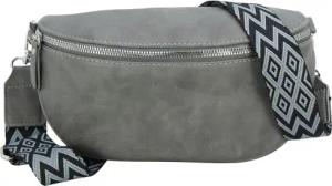 Jennifer Jones - Damen Bauchtasche mit modernem breitem Gurt - Gürteltasche, Crossbody Bag, Handtasche, Hüfttasche, Umhängetasche (Grau)