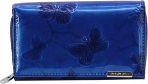 Jennifer Jones - Damen Leder Geldbörse Groß Geldbeutel viele Fächer Portemonnaie mit RFID-Schutz Schmetterlings-Motiv Blau