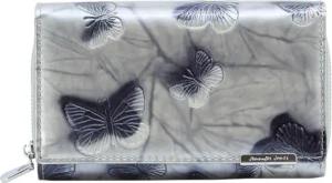 Jennifer Jones - Damen Leder Geldbörse Groß Geldbeutel viele Fächer Portemonnaie mit RFID-Schutz Schmetterlings-Motiv Silber