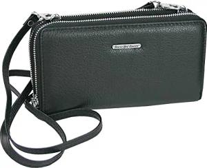 J.Jones - Echt-Leder Kellnerbörse - Taxi-Geldbörse Schwarz - Damen Herren Geldbeutel mit großem Münzfach - 18 x 10,5 cm