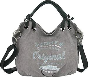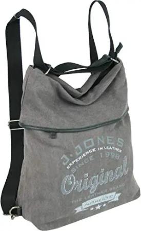 JENNIFER JONES - Große Damen Rucksack-Tasche aus Canvas und Echtleder - Vintage Hobo-Bag Modell G - Grau