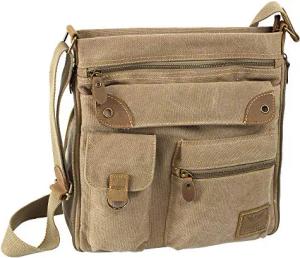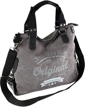 JENNIFER JONES - Große Damen Handtasche aus Canvas und Echtleder - Vintage Look - Casual Schultertasche - Umhängetasche