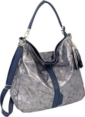 JENNIFER JONES - Große modische Damen Handtasche, Umhängetasche mit Schultergurt Hobo-Bag elegante Farben Blau Metallic