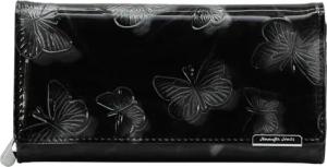 Jennifer Jones - Leder Damen Geldbörse Schmetterling Design Großer Geldbeutel Modisches Lack-Leder RFID-Schutz Schwarz