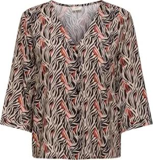 JDY Damen Bluse mit Designmuster, V-Ausschnitt, Kurzarm, Farben:Braun, Größe:XS