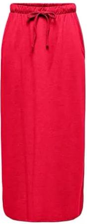 JDY Damen Maxirock mit elastischem Bund und Kordelzug, lässiger Stil, elegant, Farben:Rot-2, Größe:S