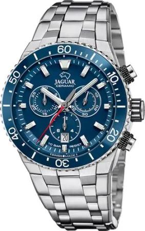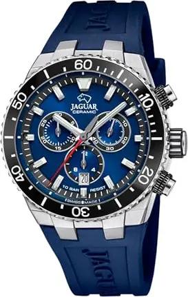 Swiss Made Herrenuhr Kautschuk Blau - Chronograph Quarz, Datum, Saphirglas - Wasserdicht 10 ATM - J1021/1 Ceramic