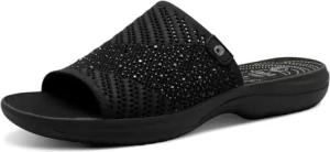Coshy Damen Pantoletten Sommer Bequem, Schwarz (Black), 39 EU