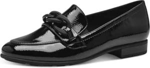 Damen Loafer ohne Absatz Vegan Blockabsatz, Schwarz (Schwarz Lack), 39 EU
