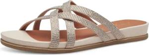 Damen Pantoletten mit Glitzersteinen Vegan, Beige (Beige), 37 EU