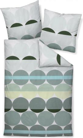 Bettwäsche J.D. 87073 02 blaugrün weiß Grafisches Design Kreise Fächer gefächert Striche Mako Satin, Größe:155 cm x 220 cm