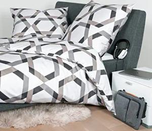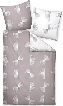 Bettwäsche J.D. 87073 07 Taupe weiß Grafisches Design Kreise Fächer gefächert Striche Mako Satin, Größe:135 cm x 200 cm