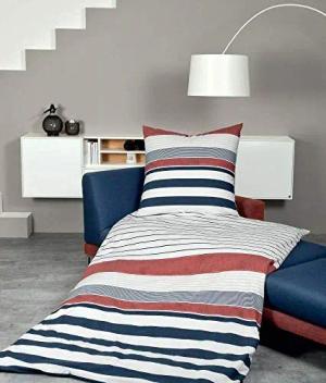 Feinbiber Bettwäsche Davos 200x220 cm + 2X 80x80 cm rot Marine