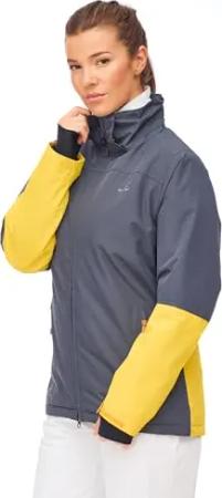 Damen Atmungsaktive wasserdichte Winter Ski Snowboard Jacke Marita 12.000mm Wassersäule und Abnehmbare Kapuze, Farbe:Dark Grey/Golden Spice, Größe:46