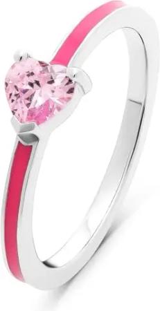Damen-Damenring 925er Silber, recycelt, Emaille 1 Zirkonia 55, Pink, Silber 32027883