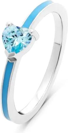 Damen-Damenring 925er Silber, recycelt, Emaille 1 Zirkonia 51, Blau, Silber 32027883