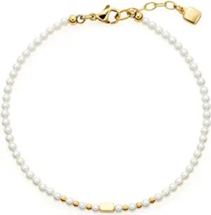 Armband Ciao Doro • Arm-Kette aus goldfarbenem Edelstahl • filigranes Perlenarmband aus weißen Imitaions-und goldenen Edelstahlperlen • 17,5-19,5 cm Länge • Damenschmuck • 022119