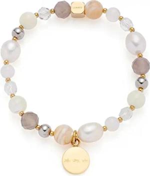Armband Hope • elastische Arm-Kette aus goldfarbenem Edelstahl • Perlen Arm-Schmuck mit Anhänger, Süßwaser-, Achat- und Muschel-Perlen • 20,5 cm Länge • Geschenk Damen • 022633