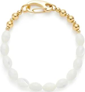 Armband Patsy • Arm-Kette aus goldfarbenem Edelstahl • Perlmuttartig schimmernde Muschelperlen • 19 cm Länge • Schmuck Geschenk für Frauen • 024618