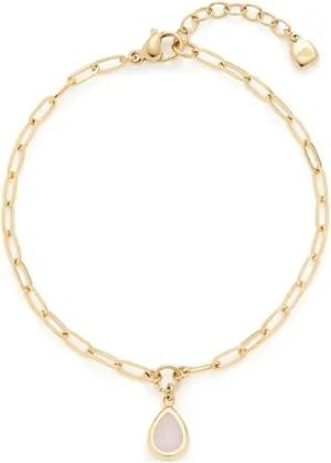 Armband Rosy • Arm-Kette aus goldfarbenem Edelstahl • Paperclip-Kette mit tropfenförmigen Anhänger aus facettiertem, rosa Glas • 18-21 cm Länge • Geschenk für Frauen • 024972