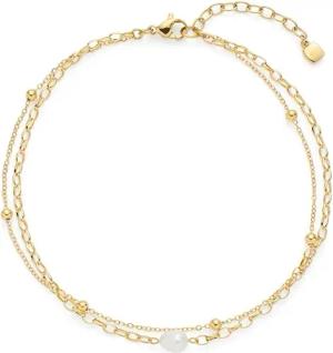 Fußkette Ciao Cleo • Fuss-Kettchen aus goldfarbenem Edelstahl • zwei feine Kettenstränge und einer schlichten Süßwasserperle • 24-28 cm Länge • Geschenk für Damen • 024988