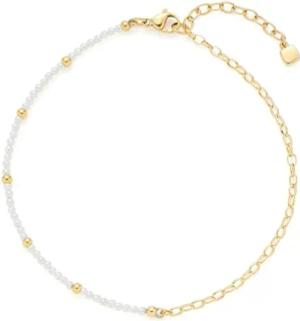 Fußkette Ciao Nana • Fuss-Kettchen aus goldfarbenem Edelstahl • weiße Perlen • akzentuiert durch kleine Goldkugeln • 24-28 cm Länge • Schmuck Geschenk für Frauen • 024989