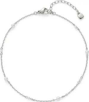 Fußkette Ciao Navina • Fuss-Kettchen aus silberfarbenem Edelstahl • weiße Perlen reihen sich in regelmäßigen Abständen entlang der zarten Ankerkette • 24-28 cm Länge • 025017