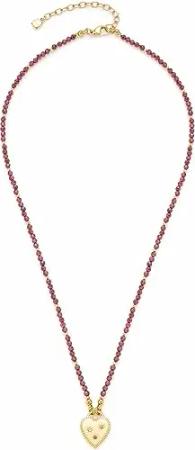Halskette Anka • Perlen-Kette aus aufgereihte Granatperlen • Herz Anhänger mit gravierbarer Rückseite • 45-50 cm Länge • Schmuck Geschenk zum Jahrestag • 023228