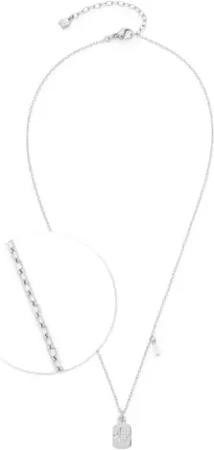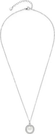 Halskette Ciao Amarila, kurze Kette aus silberfarbenem Edelstahl, Medaillon-Anhänger mit Zirkonia Steinchen und zusäzlichem Perlen-Anhänger, 42-47 cm Länge, 024450