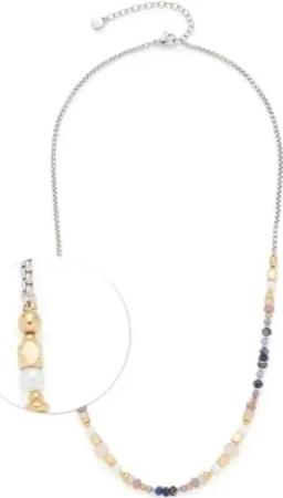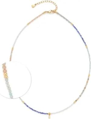 Halskette Ciao Babelli, kurze Kette aus goldfarbenem Edelstahl, pastellfarbene Natursteinchen und kleine Goldtropfen, 42-47 cm Länge, Schmuck Geschenk, 024470