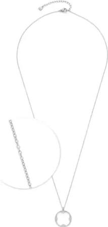 Halskette Ciao Campagnola, mittellange Kette aus silberfarbenem Edelstahl, kleeblattförmiger Anhänger mit Zirkonia Steinchen, 60-65 cm Länge, Schmuck Geschenk, 024460
