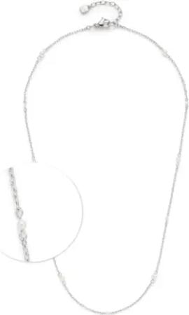 Halskette Ciao Navina • kurze Anker-Kette aus silberfarbenem Edelstahl • filigrane, weiße Imitationsperlen • 42-47 cm Länge • Schmuck Geschenk Damen • 024452