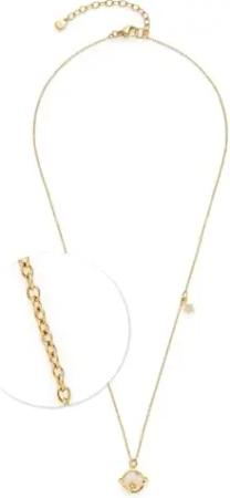 Halskette Ciao Satellite • kurze Rundanker-Kette aus goldfarbenem Edelstahl • Perlmutt-Kugel-Anhänger mit stilisiertem Ring • 45-50 cm Länge • Schmuck Geschenk für Frauen • 024986