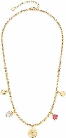 Halskette Giselle • Anker-Kette aus goldfarbenem Edelstahl • 5 kleine Charm Anhänger mit unterschiedlichen Motiven • 45-50 cm Länge • Schmuck Geschenk für Frauen • 023214