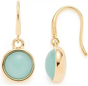 Ohrhänger Bea 1 Paar • Ohrringe aus goldfarbenem Edelstahl • frei beweglicher, türkisfarbener Glas-Cabochon • Schmuck Geschenk für Frauen • 023060