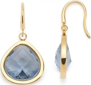 Ohrhänger Juvinga, 1 Paar Ohrringe aus goldfarbenem Edelstahl, blauer Glasstein in abgerundeter Dreiecksform, Schmuck Damen Geschenk, 024426
