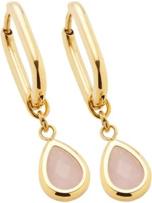 Ohrringe Ciao Rosy • 1 Paar Ohr-Hänger aus goldfarbenem Edelstahl • tropfenförmiger rosa Stein • Schmuck Geschenk für Frauen • 024973