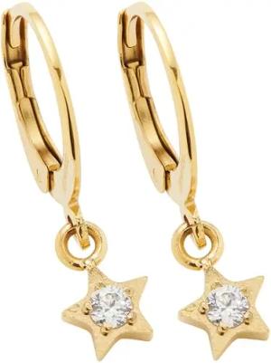 Ohrringe Ciao Sattelite • 1 Paar Ohr-Hänger aus goldfarbenem Edelstahl • Zirkonia-Stein eingefasst im hängendem Stern • Schmuck Geschenk für Frauen • 024987