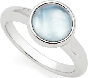 Ring Bea grey, Band-Ring aus silberfarbenem Edelstahl, Gr. 19 (60), Glasstein mit unterlegtem Perlmutt in grau-blau, Schmuck Damen Geschenk, 024361