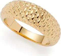 Ring Pinou • Band-Ring aus goldfarbenem Edelstahl • Oberfläche in Flechtoptik mit sich verjüngender Ringschiene • Gr. 19 (60) • Schmuck Geschenk für Frauen • 025637
