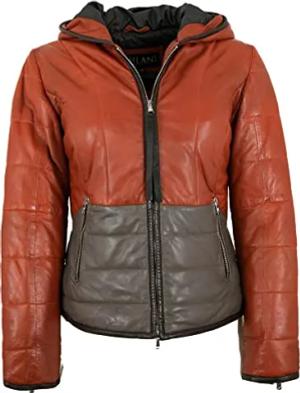 Damen Echtleder Lederjacke Steppjacke Lammnappa orange-grau Größe 36