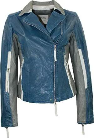Damen Lederjacke Bikerjacke Lammnappa blau Größe 46