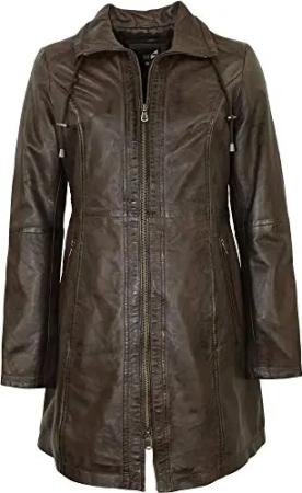 Damen Ledermantel Lammnappa Dunkelbraun Größe 46