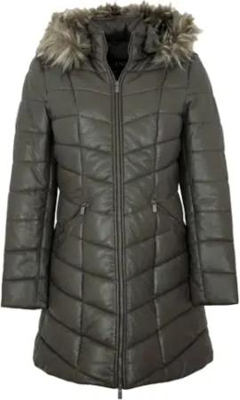Damen Ledermantel Steppmantel Kapuze Lammnappa grau Größe 40