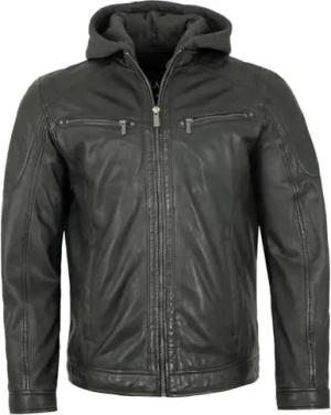 Herren Lederjacke Kapuze Lammnappa Anthra Größe 60