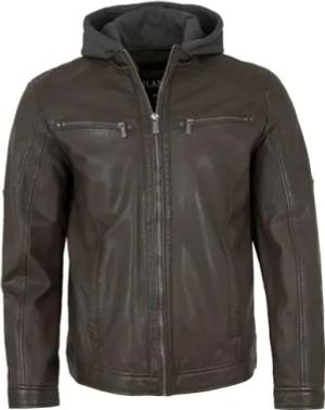 Herren Lederjacke Kapuze Lammnappa Dunkelbraun Größe 48